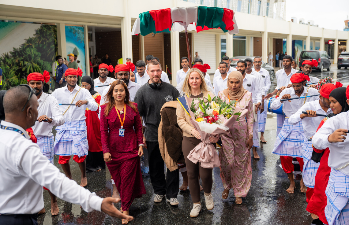 ހުޅުލެ- ނޮވެމްބަރު 27، 2025: ރާއްޖެ އަށް ޒިޔާރަތްކުރި ދެ މިލިއަން ވަނަ ޓޫރިސްޓަށް މަރުހަބާ ކިޔުމަށް، ވެލާނާ އިންޓަނޭޝަނަލް އެއާޕޯޓުގައި ބޭއްވި ހާއްސަ ހަފުލާ: މި އަހަރު ދެ މިލިއަން ވަނަ ޓޫރިސްޓުގެ ޝަރަފު ހޯދީ، ހަނީމޫނަށް، ރާއްޖެ އަށް އަލަށް އައި އިނގިރޭސި ވިލާތުގެ ބެތަނީ ސާރާ ކާސްވެލް. ވިޒިޓް މޯލްޑިވްސް އިން އޭނާ އަށް މަރުހަބާ ކީ ބޮޑުބެރުގެ ސަގާފީ ހަރަކާތްތަކާ އެކު. އަދި އެކަން ފާހަގަކުރުމުގެ ގޮތުން އޭނާ އަށް ހާއްސަ ހަދިޔާތަކެއް ވެސް ވަނީ ދީފައި. އޭގެ ތެރޭގައި ސްޓޭންޑަޑް މޯލްޑިވްސް ރިސޯޓުގެ ހަފްތާއެއްގެ ޗުއްޓީއެއް ހިމެނޭ. އެ ރަސްމިއްޔާތުގައި ޓޫރިޒަމް މިނިސްޓަރު ތޯރިގާއި އެމްއެމްޕީއާރުސީގެ މެނޭޖިން ޑިރެކްޓަރު އިބްރާހީމް ޝިއުރީ އާއި އިމިގްރޭޝަން އަދި ކަސްޓަމްސްގެ ބައެއް އިސްވެރިން ބައިވެރިވެވަޑައިގެންނެވި.--- ފޮޓޯތައް: ނިޝާން އަލީ | މިހާރު