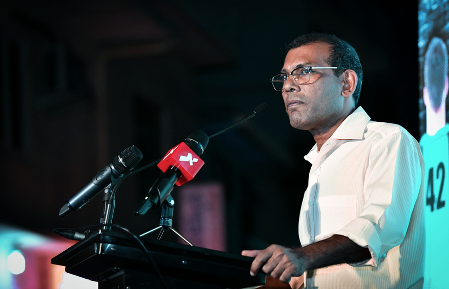 "ކައިވެނީގެ ބޭރުން ކުއްޖެއް މި ހޯދަނީ. ހޯދާފައި އެކަމަށް އަޅުގަނޑުމެންނަށް ހައްލެއް ގެނެވެން އޮތީ ނުވިހާ ގޮތް އަންހެން މީހާ ވެސް ހަދައިގެން،" ނަޝީދު ވިދާޅުވި އެވެ.