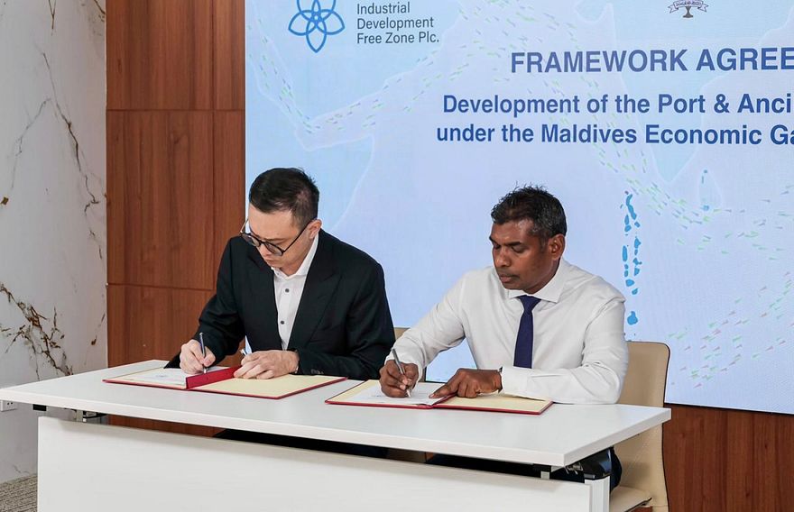 މޯލްޑިވްސް އިކޮނޮމިކް ގޭޓްވޭ މަޝްރޫއު ކުރިއަށް ގެންދިއުމަށްޓަކައި މޯލްޑިވްސް އިންޑަސްޓްރިއަލް ފްރީ ޒޯން (އެމްއައިއެފްޒެޑް) އާއި ސިންގަޕޫރުގެ ކެޕިޓަލް އޭޝިއާ އިންވެސްޓްމެންޓްސްއާ އެކު ފްރޭމްވޯކް އެއްބަސްވުމެއްގައި މިއަދު ސޮއިކޮށްފި އެވެ.