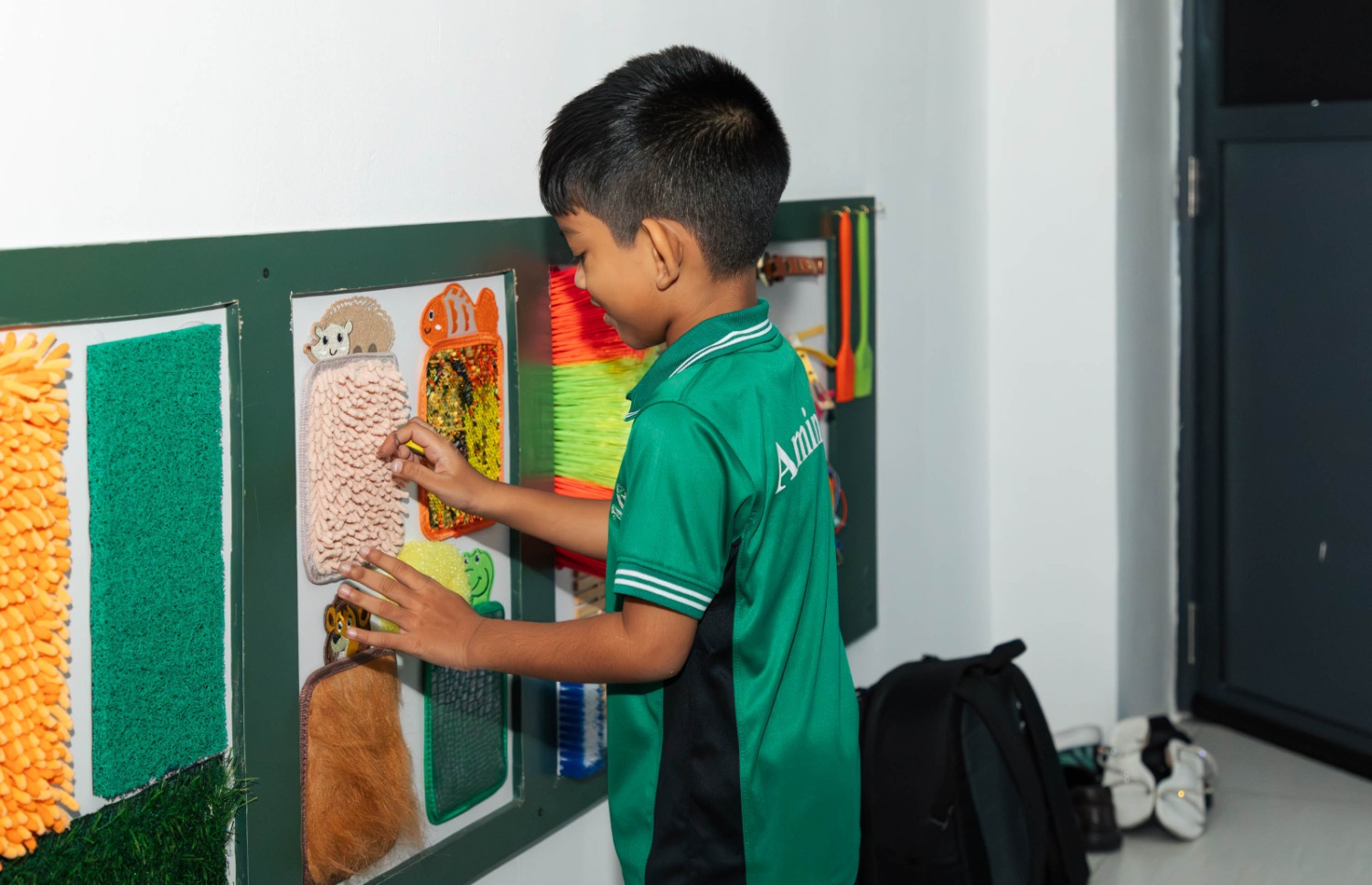 ހާއްސަ އެހީއަށް ބޭނުންވާ ދަރިވަރުންނަށް ބޭންކް އޮފް މޯލްޑިވްސްއިން އިސްނަގައިގެން ތައުލީމު އުނގަންނައިދޭން ބޭނުންވާ ވަސީލަތްތައް ފޯރުކޮށްދިނުމަށް ކުރަމުން އަންނަ މަސައްކަތްތަކުގެ ތެރެއިން، އަމީނިއްޔާ ސްކޫލުގައި "އައިވޮންޑާ"ގެ ނަމުގައި ސެންސަރީ ކުލާހެއް ތަރައްގީކޮށްފި އެވެ.