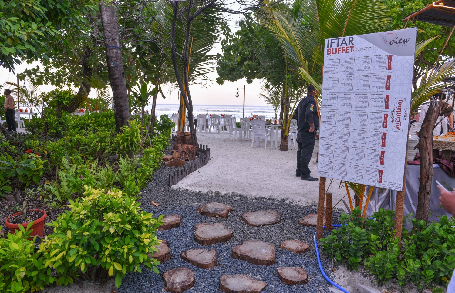 އާއިލާއާ އެކު ދާ ނަމަ ކުޑަކުދިން ކުޅެން ރީތި ދޮންވެއްޔާއި ގޮނޑުދޮށެވެ. ރޯދަ ވީއްލުމުގެ ކުރިން ވެސް ހައިކަން ހަނދާން ނެތޭހާ ހިތްގައިމު އަތިރިމައްޗެކެވެ. އިރު އޮއްސުމުން ފެންނަނީ ފާނޫޒާއި ފަނޑު އަލީގެ ބޮކިތަކުން މުޅި ތަން ޒީނަތްތެރިކޮށް ހިތްފަސޭހަ މާހައުލެއް ޤާއިމުކޮށްފައި ވަނިކޮށެވެ. ނަން ހުސްކޮށް ހުރި ކާތަކެތީގެ ރަހަޔަށް މި ހިތްގައިމުކަން އިތުރު ފުރިހަމަ ކަމެއް ގެނެސްދެ އެވެ. އެ ދުވަހެއްގެ މެނޫ އާ ގުޅޭ ތަފާތު ވައްތަރުގެ ވަރަށް ގިނަ އައިޓަމްތަކާއި އެއާ ގުޅޭ އެކިއެކި ސައިޑް ޑިޝްތަކުން ބޭނުން ވައްތަރެއްގެ ކާ އެއްޗެއް އިހްތިޔާރު ކުރުމުގެ ފުރުސަތު ލިބެ އެވެ. ރިސޯޓުތަކުން ލިބެން ހުންނަ ކެއުމެކޭ ރަހައިގެ ގޮތުން އެއްވެސް ތަފާތެއް ނެތެވެ. އޯޝަން ގްރޭންޑްގައި ހުރެފައި އޮންލައިން ބުކިން ސައިޓްތަކުގައި ކޮމެންޓް ކޮށްފައިވާ ޔޫރަޕްގެ އެތައް ގެސްޓުންގެ ކޮމެންޓްތަކުން ވެސް އެކަން ވަރަށް ރަނގަޅަށް އެނގެއެވެ.