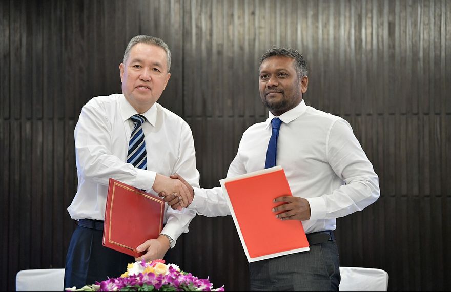 ހޮޓެލް ޖެންގައި ބޭއްވި ރަސްމިއްޔާތުގައި، އެ އެއްބަސްވުމުގައި ސޮއިކުރެއްވީ މިނިސްޓަރު ފައްޔާޒު އިސްމާއިލް އާއި ޗައިނާގެ ސްޓޭޓް އެޑްމިނިސްޓްރޭޝަން ފޯ މާކެޓް ރެގިއުލޭޝަންގެ މިނިސްޓަރު ޒޭންގް މާއޯ އެވެ.