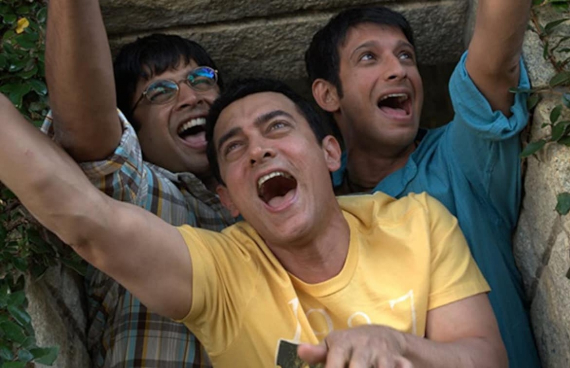 "3 އިޑިއަޓްސް" ގެ ލީޑުން ފެންނަ ރާންޗޯ (އާމިރް ހާން)، ފަރްހާން (މަދަވާން) އަދި ރާޖޫ (ޝަރްމާން)
