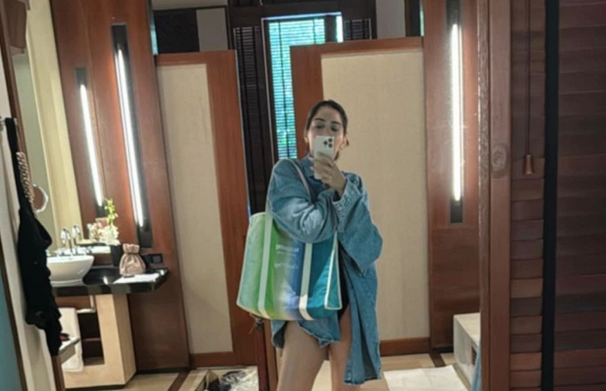 އެ ސެލްފީން ފެންނަ ގޮތުގައި އޭނާ ހުރީ ބީޗްވެއާގަ އެވެ. ޑެނިމް ޖެކެޓެއް އަޅައިގެން ހުރި އިރު، އޭނާގެ ކޮނޑުގައި ޓޯޓް ބޭގެއް ވެސް އޮތެވެ.