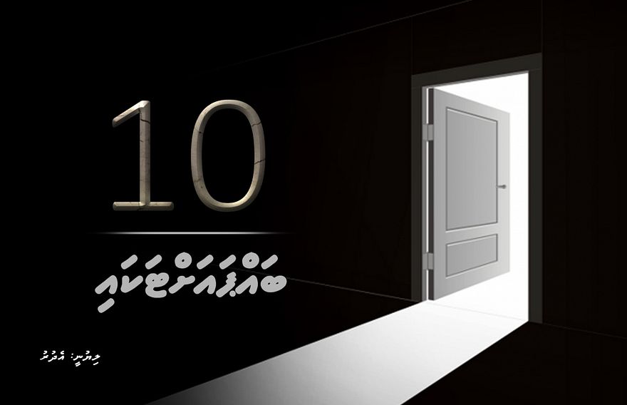 ފޮތިގަނޑު ކަހާލައި، ދޮރު ނިވާކޮށްލި އެވެ. ގޭގެ ބޮޑު ދޮރުގެ ތަޅު ހުޅުވާލި އަޑު އިވުނީ އެވަގުތު އެވެ. އޭނާ އަށް އެދިމާއަށް ބަލައިލެވުނެވެ. އެބަޔަކު ގޭތެރެއަށް ވަދެގަތީ ކުއްލިއަކަށެވެ.