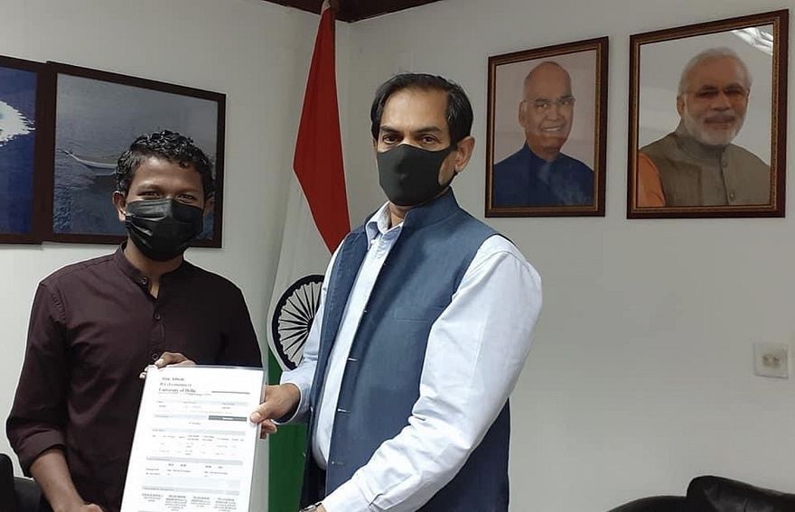 ކޮންމެ އަހަރަކު 39 ދިވެހި ދަރިވަރަކަށް ފުރުސަތު ލިބޭ ގޮތަށް ހުޅުވާލާފައިވާ ފުރުސަތުގައި އަލަށް ކިޔެވުން ފަށާ ދިވެހި ދެ ދަރިވަރެއް ކަމަށްވާ އަބޫބަކުރު ލުތުފީ އާއި އަލާއު އަދުނާނާ، ރާއްޖޭގައި ހުންނަވާ އިންޑިއާ ހައި ކޮމިޝަނަރު ސަންދޭ ސުދީރް ވަނީ ބައްދަލުކުރައްވައި ސްކޮލަޝިޕް ހަވާލުކުރައްވައިފަ އެވެ.