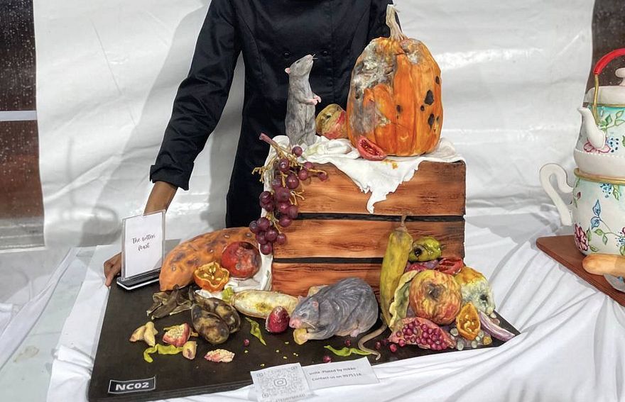 އޭނާ ތައްޔާރުކުރި "ދަ ރޮޓަން ފީސްޓް" ކޭކުގައި ފެންނަނީ ވަކަރު ބޯޑެއްގެ މަތީގައި ދުވެ ދުވެ ތިބި މީދާތަކަކާއި ކުނި މޭވާ އާއި ތަރުކާރީ ތަކެކެވެ. މުބާރާތުގެ އެއް ވަނަ ލިބުނީ މި ކޭކުގެ އުފެއްދުންތެރިކަމާއި ހުނަރުވެރި ކަމަށެވެ.