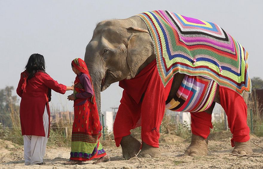 އިންޑިއާގެ މަތޫރާ ކައިރީ އޮންނަ ކުޑަ އަވަށެއްގެ އަންހެނުން، އެ ހިސާބުގައި އުޅޭ އެތްތަކަކަށް ކުލަ ގަދަ އަންނައުނު ތައްޔާރުކޮށް އެ ހެދުންތައް ލައްވައިފި އެވެ. މިއީ ފިނި މޫސުމުގެ އަސަރުން އެސޮރުމެން ސަލާމަތްކުރަން ކުރި ކަމެކެވެ.