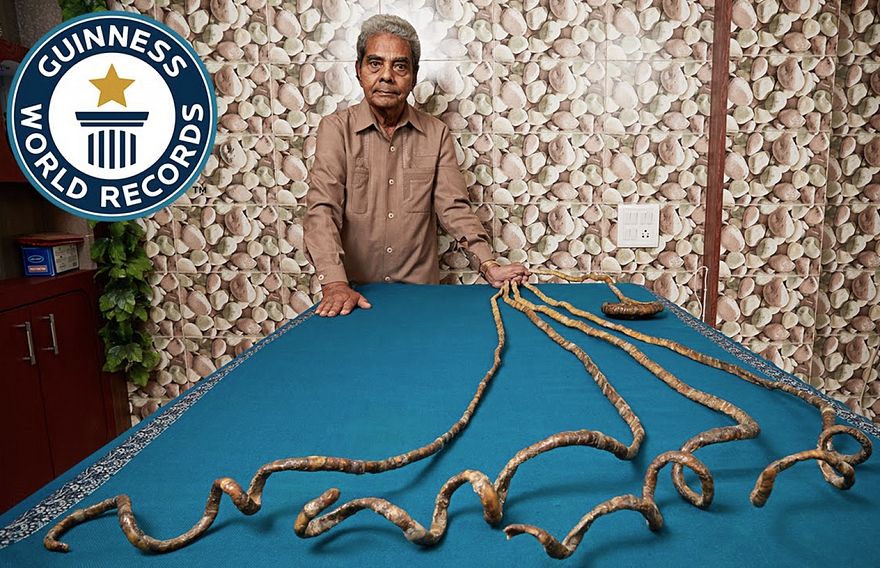 އެއް އަތުގައި އެންމެ ދިގު ނިޔަފަތިތައް ހުރި މީހާގެ ދުނިޔޭގެ ރެކޯޑް، ގިނިސް ވޯލްޑް ރިކޯޑުން ސްރީދާރަށް ދިނީ 2016 ގަ އެވެ.