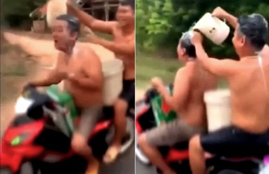ދެކުނު ވިއެޓްނާމްގެ ބިންހް ޑުއޯންގްގައި މިކަން ކުރި ވީޑިއޯއެއް ސޯޝަލް މީޑިއާގައި ދައުރުމުން އަންނަ އިރު އޭގައި ފެންނަނީ ހަމެކަނި ސޯޓް ލައިގެން ތިބި ދެ މީހުންގެ ދޭތެރޭގައި ފެން ބާލިދީއެއް ބަހައްޓައިގެން ގައިގައި ސައިބޯނި ލަމުން ބޮލަށް ފެން އަޅަމުން ދުއްވާ ތަނެވެ.