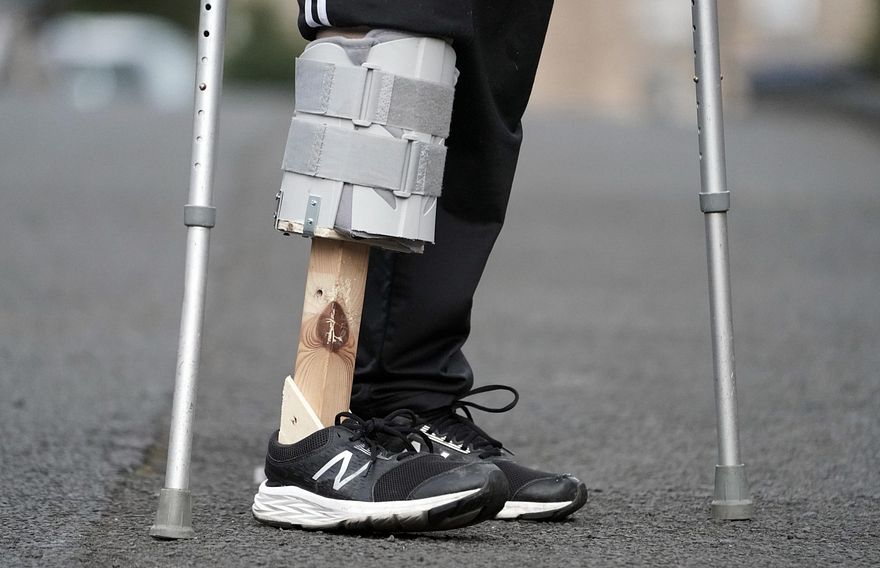 އެއްފައި ބުރިކޮށްލާފައި ހުރި މީހަކަށް އިނގިރޭސިވިލާތުގެ ނެޝަނަލް ހެލްތު ސާވިސް (އެންއެޗްއެސް) އިން ފަރުވާ ހޯދަން އެޕޮއިންޓްމަންޓެއް ހޯދަން އެތައް މަހެއް ވަންދެން މަޑުކުރަން ޖެހުނު މީހަކަށް އޭނާގެ އަނބީހާ ހަދައިދިން ލަކުޑި ފައެއްގެ އެހީގައި ހިނގަން ފަށައިފި އެވެ.