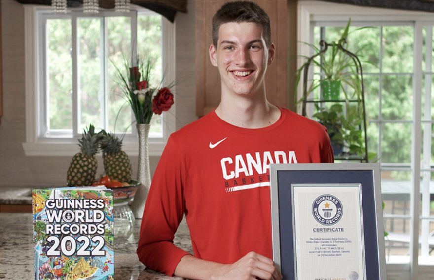 އެތަނުން ބުނި ގޮތުގައި މިދިޔަ އަހަރު ޗައިނާ ކުއްޖަކަށް ލިބުނު އެ ރެކޯޑް، ކެނެޑާ އިން ލިބުނު 15 އަހަރުގެ ކުއްޖާ އަކީ އިސްކޮޅުގައި 7 ފޫޓް 5.33 އިންޗި (226.9 ސެންޓިމީޓަރު) ހުރި ކުއްޖެކެވެ. މިދިޔަ އަހަރު އެ ރެކޯޑް ލިބުނު ޗައިނާގެ ކުއްޖާގެ އިސްކޮޅުގައި ހުރީ 7 ފޫޓް 3.02 އިންޗި (221.03 ސެންޓި މީޓަރު) އެވެ.