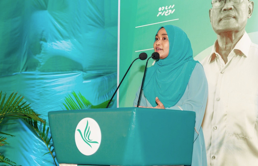 "ޕީއެންސީގެ ކެންޑިޑޭޓުންނަށް ތިޔަ ބޭފުޅުން ވޯޓު ދެއްވާ. އެހެން ނޫނީ ސަރުކާރާއެކު މި އެކުވެގެން މަސައްކަތެއް ނުކުރެވޭނެ. އޭރުން އަޅުގަނޑުމެން ބޭނުންވާ ލަނޑުދަނޑިތައް ހާސިލް ކުރެވޭނީ، އަޅުގަނޑުމެން ބޭނުންވާ މަގަށް ކުރިއަށް ދެވޭނީ،" ފަސްޓް ލޭޑީ ވިދާޅުވި އެވެ.