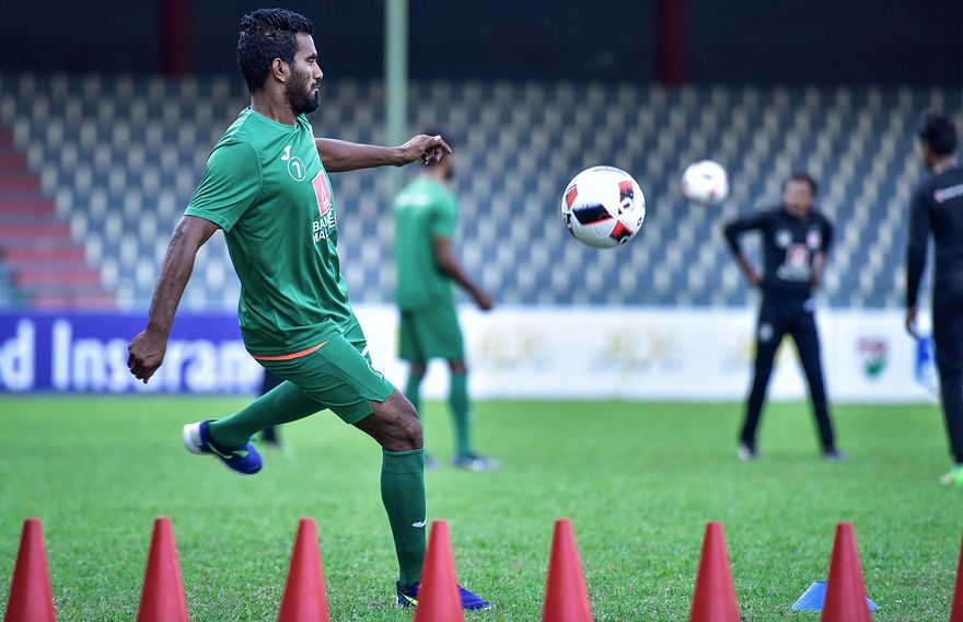 އޭޝިއަން ކަޕް ކޮލިފައިންގައި މާދަމާރޭ ބޫޓާނާ ދެކޮޅަށް ރާއްޖެ ކުޅޭ މެޗުގެ ކުރިން މިއަދު ބޭއްވި ނޫސްވެރިންގެ ބައްދަލުވުމަށް ކެޕްޓަން އަލީ އަޝްފާގް (ދަގަނޑޭ) ހާޒިނުރުނުވުމުން މާދަމާރޭގެ މެޗުގެ ސްކޮޑުން އޭނާ ވަކިކޮށްފި އެވެ.