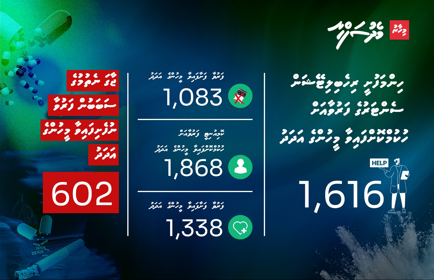 ލިބިފައިވާ މައުލޫމާތުތަކަށް ބަލާއިރު، މި އަހަރުގެ މިހާތަނަށް 1،868 މީހުންނަށް ވަނީ މުޖުތަމައުގައި ހުރެގެން ފަރުވާ ހޯދަން ހުކުމްކޮށްފަ އެވެ. އޭގެ ތެރެއިން 1،300 އަށްވުރެ ގިނަ މީހުން ފަރުވާ ފަށާފައިވާއިރު، ރިހެބިލިޓޭޝަން ފަރުވާއާއެކު، ޖާގަ ނުލިބިގެން 602 މީހުން ތިބީ ވެއިޓްލިސްޓުގަ އެވެ.