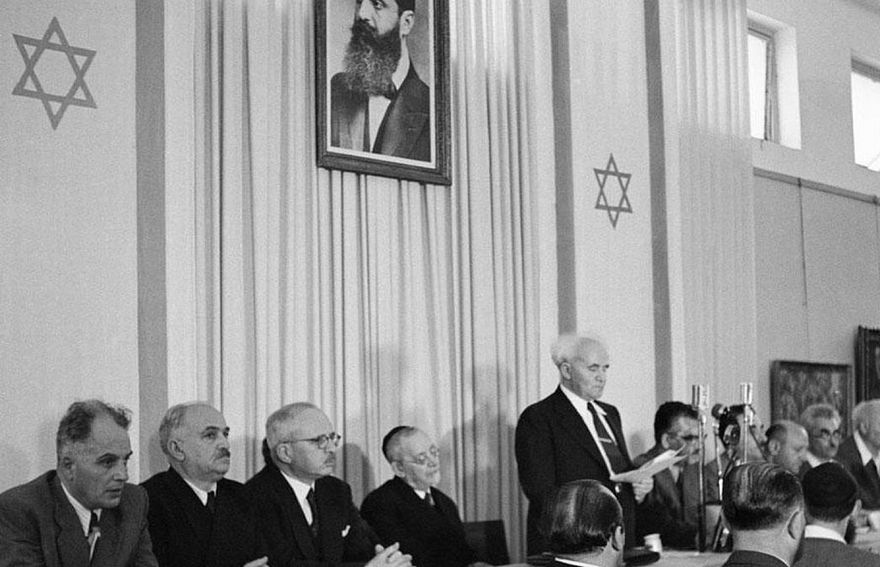 އިޒްރޭލްގެ ދައުލަތް 1948 ބެންގޯރިއަށް އިއުލާން ކުރަނީ ގައި އިއުލާން ކުރަނީ