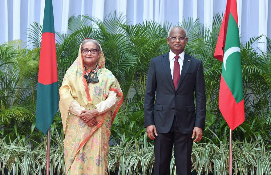 ބަންގްލަދޭޝްގެ ބޮޑުވަޒީރު ޝޭޚު ހަސީނާއާއާ އެކު ރައީސް އޮފީހުގައި މިއަދު ދެއްވި ގުޅިފައިވައިވާ ބަޔާނުގައި ރައީސްް ވިދާޅުވީ ސިއްހީ ދާއިރާ އާއި މަތީ ތައުލީމާއި އިންސާނީ ތަރައްގީގެ ދާއިރާ އާއި ދިފާއީ ދާއިރާއިން ބަންގްލަދޭޝ އިން ރާއްޖެއަށް ދެނީ ފާހަގަކޮށްލެވޭ ވަރުގެ އެހީތެރިކަމެއް ކަމަށެވެ. ކޮވިޑް-19 ގެ ބަލިމަޑުކަމާ ގުޅިގެން އެ ގައުމުން ރާއްޖެއަށް ވެދިން އެހީއަށް އަށް ރައީސް ޝުކުރު އަަދާކުރެއްވި އެވެ.