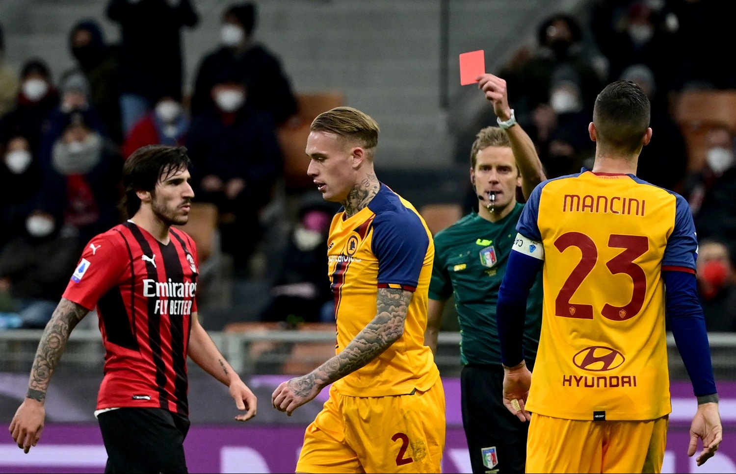 މިލާނުގެ ތިންވަނަ ލަނޑު ޖެހީ ޕޯޗުގީޒް ފޯވާޑް ރަފައެލް ލެއާއޯ އެވެ. މެޗުގެ އިތުރު ވަގުތުގައި ޕެނަލްޓީ އޭރިއާ ތެރެއިން ލެއާއޯ އަށް ފައުލް ކޮށްގެން ރޯމާގެ ޑިފެންޑަރު ޖިއަންލޫކާ މަންޗިނީ އަށް ވެސް ވަނީ ދެވަނަ ރީނދޫ ކާޑަކާ އެކު ރަތް ކާޑެއް ދައްކައިފަ އެވެ. މި ފައުލުގައި ލިބުނު ޕެނަލްޓީ މިލާންގެ ޒްލަޓާން އިބްރަހިމޮވިޗް ފޮނުވާލުމުން ރޯމާގެ ކީޕަރު، ރުއީ ޕެޓްރީސިއޯ ވަނީ ދިފާއު ކޮށްފަ އެވެ.