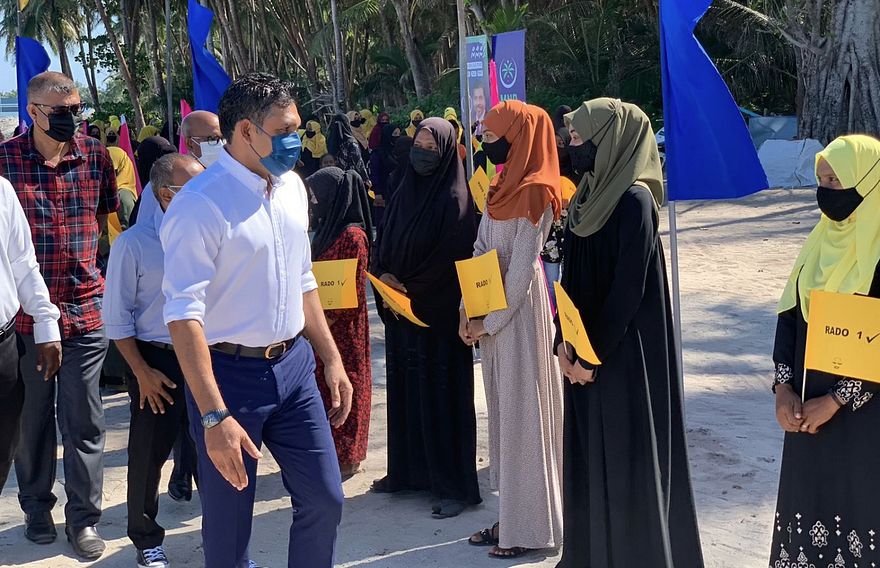 ޖުމްހޫރީ ޕާޓީ މެމްބަރެއްގެ ގޮތުގައި ހުންނެވި ނައިބު ރައީސް ފައިސަލް ގެންދަވަނީ ކޮމަންޑުއަށް ވަޑައިގެން ސަރުކާރު ކޯލިޝަންގެ މައި ޕާޓީ އެމްޑީޕީގެ ފަރާތުން ބައި އިލެކްޝަންގައި ވާދަކުރާ މުހައްމަދު ރާޝިދުގެ ކެމްޕޭނަށް ރައްޔިތުންނާ ބައްދަލު ކުރައްވަމުންނެވެ.