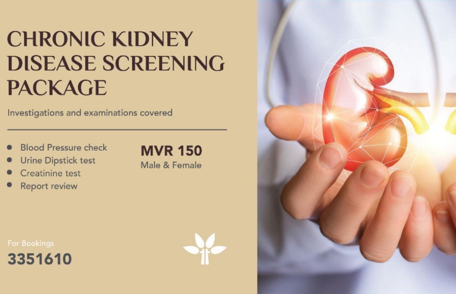 ޓްރީ ޓޮޕް ހޮސްޕިޓަލުން ދާއިމީ ކިޑްނީ ބަލި ނުވަތަ ސީ.ކޭ.ޑީ އަށް ސްކްރީނިންގެ ހިދުމަތްތައް ފޯރުކޮށްދެއެވެ.