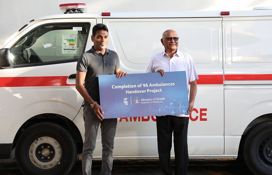 ޖަޕާން ސަރުކާރުން ހަދިޔާކުރި އެމްބިއުލާންސްތައް ރަށްރަށުގެ ސިއްހީ ހިދުމަތްދޭ ތަންްތަނާ ހަވާލުކުރަން އޮކްޓޯބަރު 12، 2019 ގައި ޖުމްހޫރީ މައިދާނުގައި ބޭއްވި ރަސްމިއްޔާތެއްގައި އޭރުގެ ހެލްތު މިނިސްޓަރު އަބްދުﷲ އަމީން ވިދާޅުވެފައި ވަނީ، އެ ދުވަހު ހަވާލުކުރި އެމްބިއުލާންސްތަކާ އެކު ރާއްޖޭގެ ހުރިހާ ރަށަކަށް އެމްބިއުލާންސް ހަމަވިއަސް އަދިވެސް ބައެއް ރަށްރަށުގައި އެމްބިއުލާންސްތައް ހުރީ ރަނގަޅަށް ހިދުމަތް ދެވޭ ފަދަ ހާލަތެއްގައި ނޫން ކަމަށެވެ.