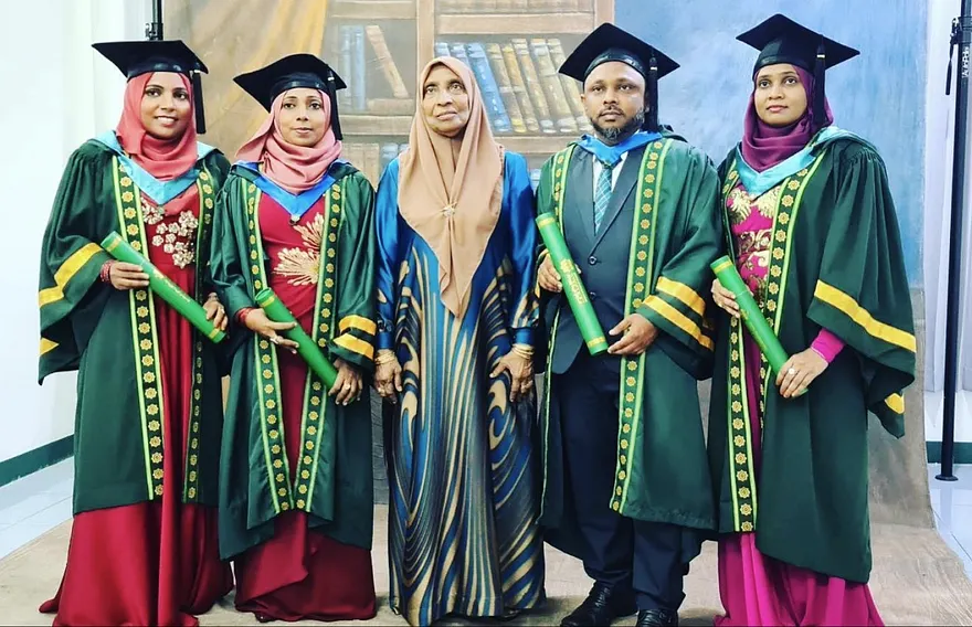 އިސްލާމިކް ޔުނިވާސިޓީގެ ހޯލުގައި މިދިޔަ ބުރާސްފަތި ދުވަހުގެ ރޭ ބޭއްވި ދަސްވެނިވުމުގެ ބޮޑު ރަސްމިއްޔާތުގައި އެންމެ ބޮޑު ޝަރަފަކާއެކު އުފަލެއް ލިބުނު އެކަކީ މަރިޔަމް ޖަމީލާ އެވެ. އެ ޔުނިވާސިޓީގެ އެކި ކޯސްތަކުން އެ ދުވަހު ބޭއްވި ދެ ދަންފަޅިން 600 އަށްވުރެ ގިނަ ދަރިވަރުން ދަސްވެނިވިއިރު، އޭނާގެ ހަތަރު ދަރިއަކު ވަނީ ކިޔެވުން ނިންމައި ސެޓްފިކެޓް ހާސިލްކޮށްފަ އެވެ.