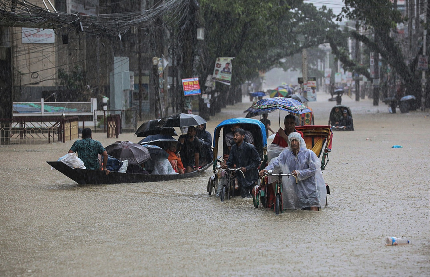 ބަނގްލަދޭޝްގެ އިރުއުތުރު ސަރަހައްދަށް ކުރިމަތިވެފައިވާ ފެންބޮޑުވުމުގެ ހާދިސާގެ ސަބަބުން އެތައް މިލިއަން ބަޔަކަށް ގެއްލުންތައް ލިބެމުން ދާއިރު، ސްކޫލްތަކާއި ޔުނިވަސިޓީތައް މިހާރު ވަނީ، ހާލުގައި ޖެހިފައިވާ މީހުން ބައިތިއްބާ ވަގުތީ ހިޔާތަކަކަށް ބަދަލުކޮށްފަ އެވެ. ބައެއް ސަރަހައްދުތަކުގައި ފެންބޮޑުވެފައިވާ އިރު، ކޯރުތަކާ ކައިރި ސަރަހައްދުގައި ހުރި ބައެއް ގެތައް ބާރު އޮޔާއެކު ވެއްޓިފައިވެ އެވެ. އޭގެ އިތުރުން، ބައެއް ސަރަހައްދުތަކުގައި މިހާރު އޮތީ ގެތަކުގައި ދިރިނުއުޅެވޭ ވަރަށް ފެންގަނޑު ބޮޑުވެފަ އެވެ.