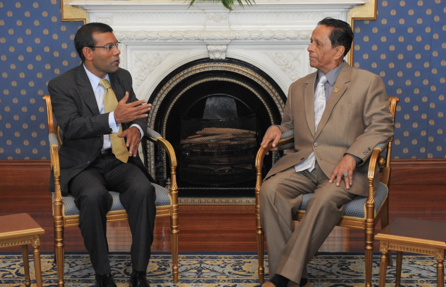ނަޝީދުގެ ވެރިކަމުގައި 2011 ވަނަ އަހަރު މާޗް 11-13 އަށް މޮރިޝަސްގެ މިނިވަން ދުވަހުގެ ރަސްމިއްޔާތަށް އެ ގައުމުގެ އޭރުގެ ބޮޑުވަޒީރު ނަވިންޗަންދުރަ ރަމްގޫލަމްގެ ދައުވަތަކަށް ކުރެއްވި ޒިޔާރަތުގައި ބޮޑުވަޒީރުގެ އިތުރުން އިސް ބޭފުޅުންނާ އެކު އެކި ބައްދަލުވުންތައް ބޭއްވެވި އެވެ. އެ ބައްދަލުވުންތަކާ ފަހު ނެރުނު "ޖޮއިންޓް ކޮމިނިކިއު" ގައި ބުނެފައިވަނީ ޗާގޮސްގެ ރަށްތަކުގެ ވަށައިގެންވާ ސަރަހައްދަކީ ހިމާޔަތްކޮށްފައިވާ ސަރަހައްދުތަކެއް ކަމަށް އިނގިރޭސި ވިލާތުން ކަނޑައެޅުމާ ދެ ލީޑަރުން ވެސް ވަރަށް ބޮޑަށް ދެކޮޅުހެއްދެވި ކަމަށެވެ.