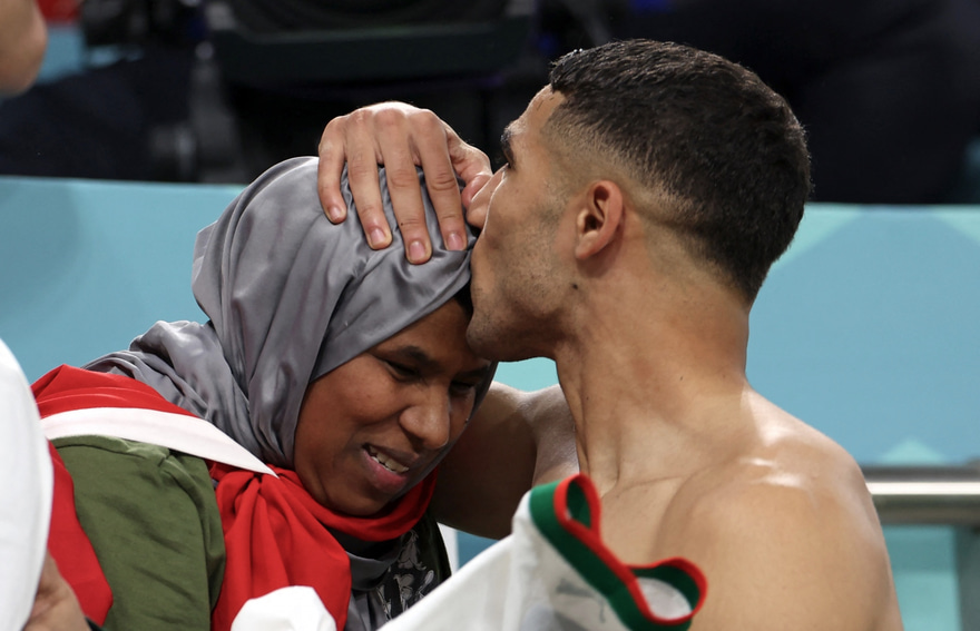 ދޯހާ (ނޮވެމްބަރު 27) - ގުރޫޕް އެފްގައި މިއަދު ބެލްޖިއަމްގެ މައްޗަށް މޮރޮކޯއިން ހޯދި މޮޅަށް ފަހު، އެ ޓީމުގެ ޑިފެންޑަރު އަޝްރަފް ހަކީމީގެ މަންމަ އަށް އޮތް ލޯބި، އުފާފާޅު ކުރުމުގެ ތެރެއިން އޭނ ހާމަކޮށް ދީފި އެވެ.