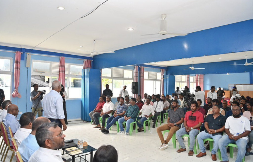 މަސްވެރިންގެ ދުވަސް ފާހަގަކުރުމަށް މަސްވެރިންނާއެކު ރައީސް އިބްރާހިމް މުހައްމަދު ސޯލިހު މި ރަށުގައި މިއަދު ބޭއްވެވި ބައްދަލުވުމުގައި، ދެކުނުގެ މަސްވެރިންގެ ޝަކުވާތައް އޮއްސާލައިފި އެވެ.
