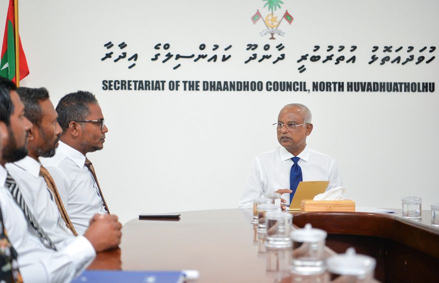 ތަރައްގީގެ މަޝްރޫއުތަކެއް ފައްޓަވައިދެއްވަން ހުވަދު އަތޮޅުގެ ބައެއް ރަށްތަކަށް ރައީސް ކުރެއްވި ދަތުރުފުޅުގައި ދާންދުއަށް ވަޑައިގެން ކައުންސިލާއި އެ ރަށުގެ އަންހެނުންގެ ތަރައްގީއަށް މަސައްކަތްކުރާ ކޮމިޓީގެ މެންބަރުންނާ ބައްދަލުކުރައްވައި، ރަށުގެ ތަރައްގީއަށް ރައްޔިތުން ބޭނުންވާ ކަންކަމާއި ގުޅޭގޮތުން މަޝްވަރާ ކުރެއްވި އެވެ.