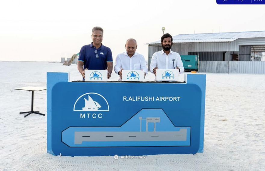 އަލިފުށީގައި ބޭއްވި ރަސްމިއްޔާތެއްގައި އެއާޕޯޓް ޓާމިނަލްގެ ބިންގާ އަޅުއްވައި ދެއްވީ އެ ދާއިރާގެ މެމްބަރު މުހައްމަދު ރަޝީދު ހުސައިނާއި އެ މަޝްރޫއު ހަވާލުވެފައިވާ އެމްޓީސީސީގެ ސީއީއޯ އާދަމް އާޒިމާއި އަލިފުށީ ކައުންސިލްގެ ރައީސް އާދަމް އިމްރާނެވެ.