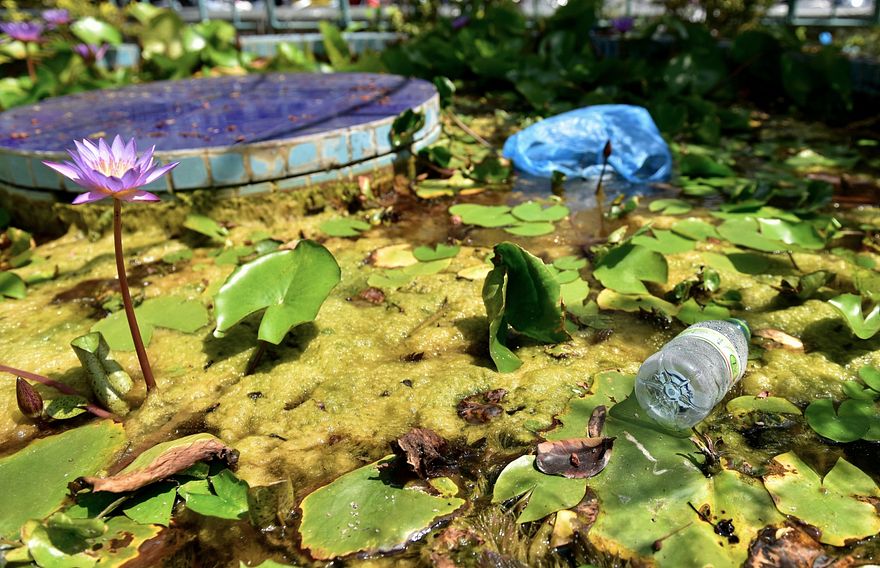 ބަގީޗާ ތެރެ އާއި އެ ތަނުގެ ފެންގަނޑާއި ވަޅު ވެސް ވަނީ ޕްލާސްޓިކް ފުޅި އާއި ކޮތަޅާއި ކާ އެއްޗެހި ހުސްކުރި އެކި ކަހަލަ ތަކެތި އަޅައި ގޮނޑުކޮށްފަ އެވެ. އޭގެ ތެރޭގައި ކަޕް ނޫޑްލްސް ހުސްކުރި ތައްޓާއި ކެފޭތަކުން ވިއްކާ ކާއެއްޗެހި އަޅައިފައި ދޭ ކަރުދާހު ފޮށި ވެސް ހިމެނެ އެވެ. ބެލެވޭ ގޮތުގައި މިއީ މިސްކިތުގެ ފާރު ބުރި ކައިރީގައި ތިބެގެން މީހުން ކައިބޮއެ ހަދައި އެތެރެއަށް އުކާފައި ހުރި އެއްޗެއްސެވެ. އެ ސަރަހައްދުގައި ޑަސްބިނެއް ނުހުރެ އެވެ.