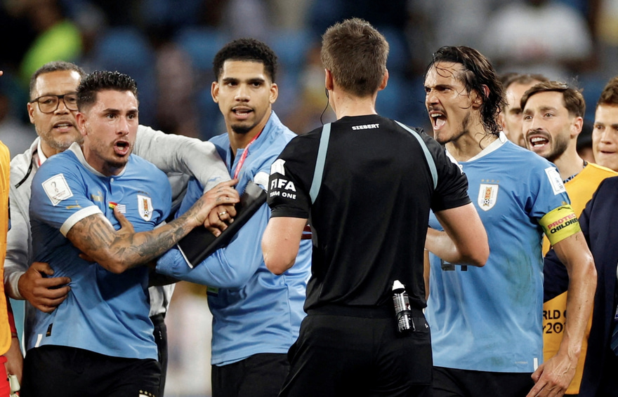 ނިޔޯން (ޖެނުއަރީ 28) - ނިމިދިޔަ ވޯލްޑް ކަޕް ގައި ރެފްރީންނާ ދިމާކޮށް ހަމަނުޖެހުން ހިންގި އުރުގުއޭ ޓީމުގެ ހަތަރު ކުޅުންތެރިއަކަށް ފީފާ އިން އަދަބު ދީފި އެވެ.