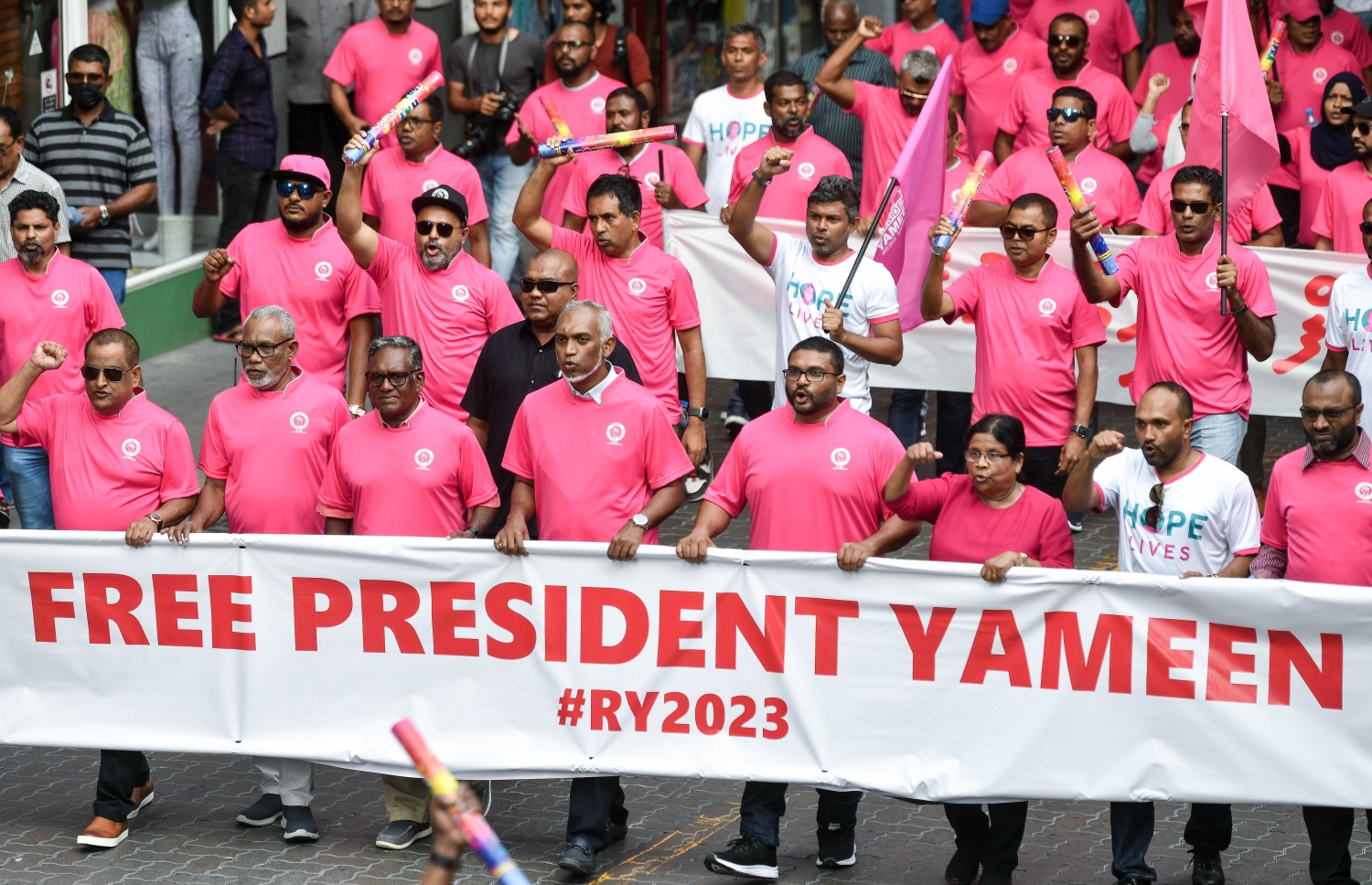 ޕީޕީއެމްގެ ރިޔާސީ ކެންޑިޑޭޓް އަދި ކުރީގެ ރައީސް އަބްދުﷲ ޔާމީން މިނިވަންކުރަން ގޮވާލައި އިދިކޮޅު ޕީޕީއެމް/ ޕީއެންސީ ކޯލިޝަނުން މާލޭގައި މިއަދު ބޮޑު ހިނގާލުމެއް ބާއްވައިފި އެވެ.