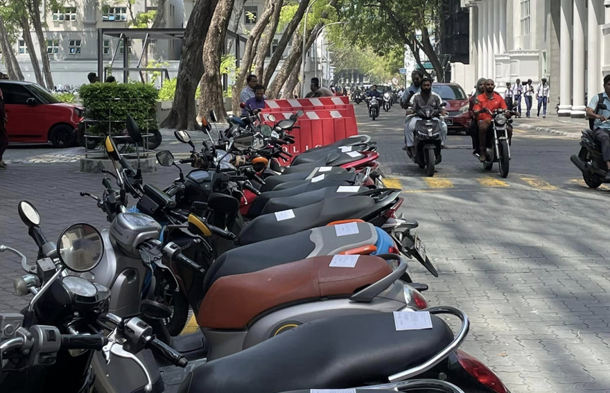 ސަރުކާރުގެ އޮފީސްތައް އެންމެ ގިނައިން ހުންނަ ވެލާނާ ބިލްޑިންގު ކުރިމަތީގައި އޮންނަ ދެ މަގުގައި ޕާކުކޮށްފައި ހުރި ވަރަށް ގިނަ ސައިކަލުތަކުގައި ފުލުހުން މިއަދު ސްޓިކާ ޖެހި އެވެ. އެއީ ޕާކުކުރުން މަނާ ތަންތަނެވެ. ނަމަވެސް، އެތަނުގައި މީހުން ވެހިކަލް ޕާކުކުރަމުން އަންނަތާ މިހާރު ވަރަށް ގިނަ ދުވަސްވެއްޖެ އެވެ. ފުލުހުން ކުރިން އެކަން ނުވެސް ހުއްޓުވަ އެވެ.