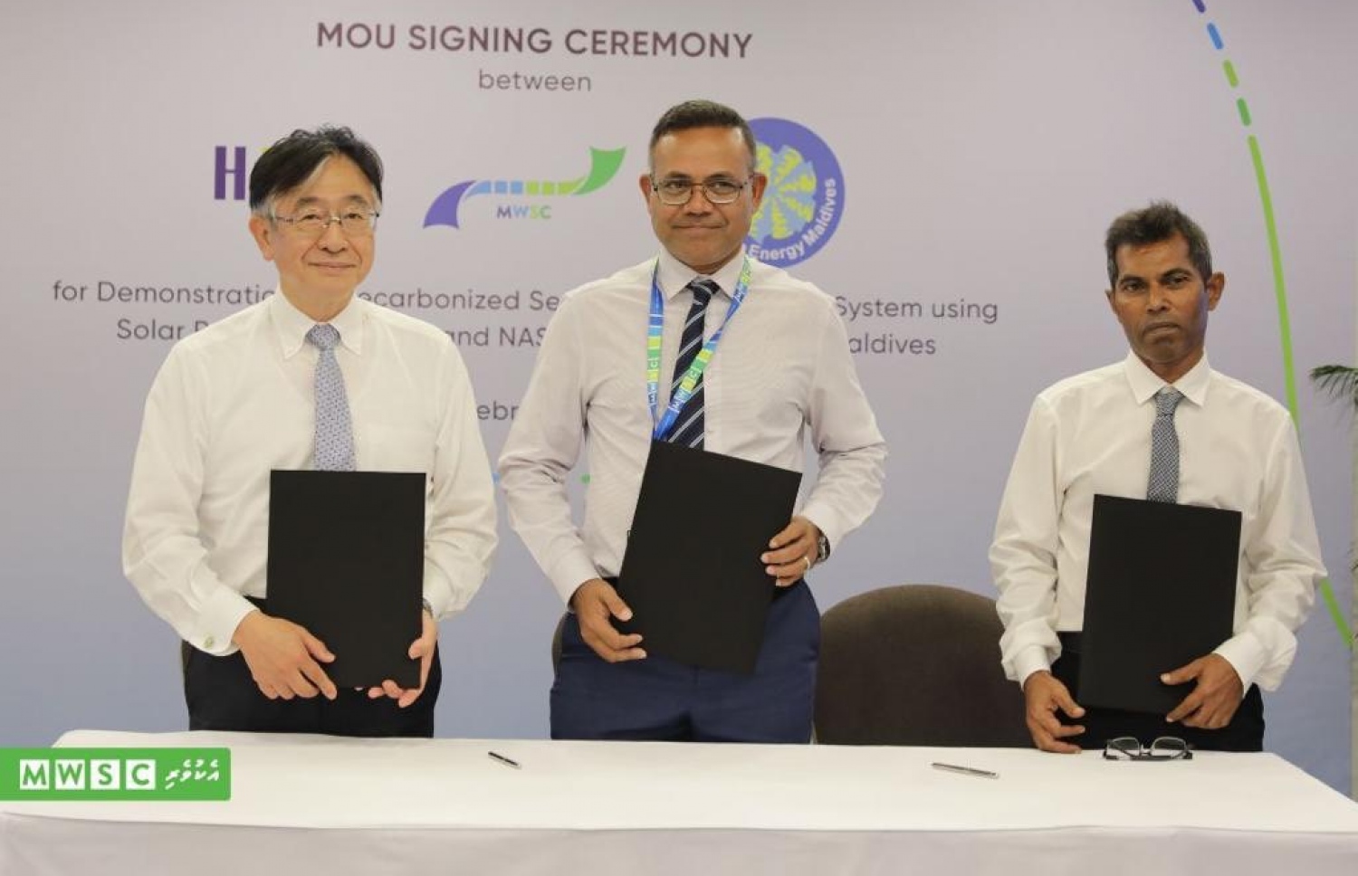 އެމްޑަބްލިއުއެސްސީގެ ފަރާތުން އެ އެއްބަސްވުމުގައި ސޮއިކުރެއްވީ މެނޭޖިން ޑިރެކްޓަރު ހަސަން ޝާހެވެ. ރިނިއުބަލް އެނާޖީ މޯލްޑިވްސްގެ ފަރާތުން ސޮއިކުރެއްވީ ޗެއާމަން އިބްރާހިމް ނާޝިދު އެވެ. އަދި ހިޓާޗީ ޒޯސެން ކޯޕަރޭޝަނުން ސޮއިކުރެއްވީ މެނޭޖިން ޑިރެކްޓަރު މިޔާގީ ޓައިޔޯ އެވެ.