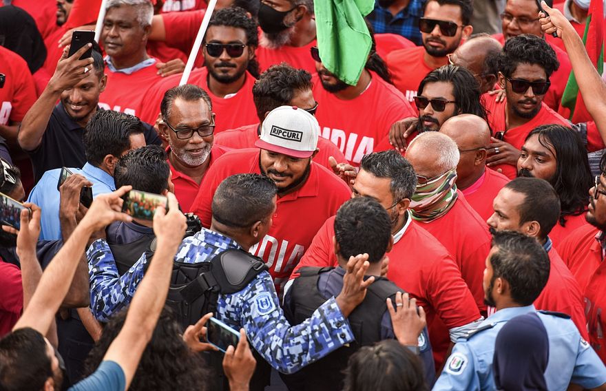 "އިންޑިއާގެ ބީޖޭޕީ ރުއްސުމަށްޓަކައި ސަރުކާރުގެ އެކި ފަންތީގެ މަގާމުތަކުގައި ތިއްބެވި ބޭފުޅުން އިންޑިއާއަށް ސަނާ ކިޔާ، އިންޑިއާ ރުއްސުމަށްޓަކައި ދިވެހި ރައްޔިތުން ނިކަމެތި ކުރަމުންދާ ދިއުން އެންމެ ހަރުކަށި އިބާރާތުން ކުށްވެރިކުރަމެވެ،" އެ ބަޔާނުގައިވެ އެވެ.