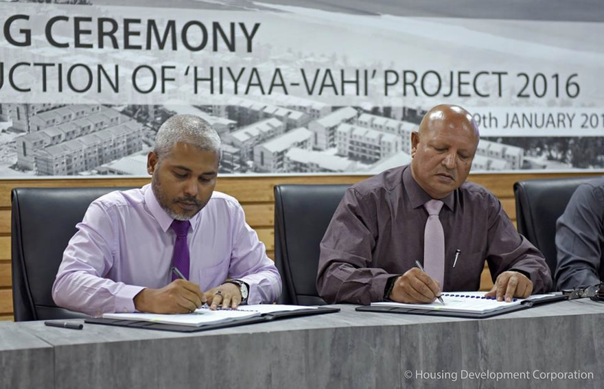 އެޗްޑީސީގައި ބޭއްވި ރަސްމިއްޔާތުގައި 402 ހައުސިން ޔުނިޓް އެޅުމުގެ އެއްބަސްވުމުގައި އަމިން ކޮންސްޓްރަކްޝަނުން ސޮއިކުރެއްވީ މެނޭޖިން ޑިރެކްޓަރު އަބްދުﷲ މުހައްމަދެވެ. އެޗްޑީސީން ސޮއިކުރެއްވީ މެނޭޖިން ޑިރެކްޓަރު މުހައްމަދު ސައިމަނެވެ.