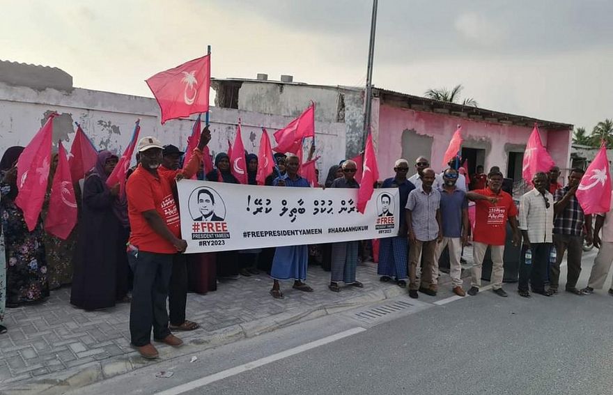 އިދިކޮޅު ފަރާތްތަކުން މާލޭގެ އިތުރުން ރާއްޖޭގެ އެކި ރަށްރަށުގައި މިއަދު ވަނީ ޔާމީން މިނިވަން ކުރުމަށް ގޮވާލައި މުޒާހަރާ ކޮށްފަ އެވެ. މާލޭގައި ބޭއްވި އެއްވުމަށް ފުލުހުން ވަނީ ހުރަސް އަޅައިފަ އެވެ.