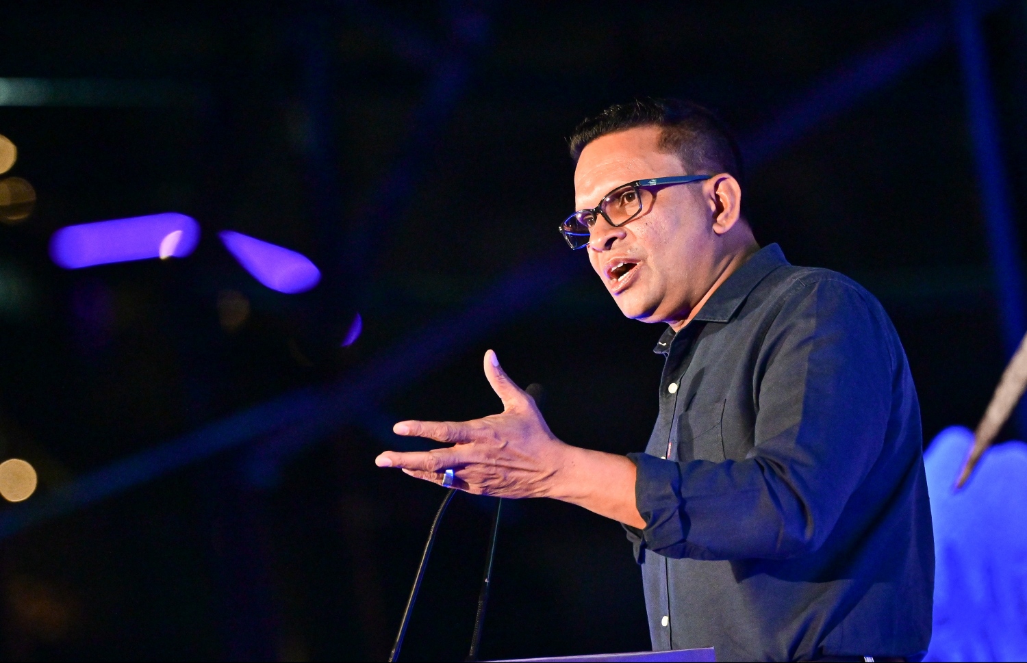 "އަޅުގަޑުމެން މިތާ މި ތިއްބެވި ހުރިހާ ޕާޓީތަކުގެ ވެރިންނާއި ތި އެންމެހާ ބޭފުޅުން މި ތިބީ އަޅުގަނޑުމެންގެ ހުރިހާ ކުލަތަކާއި ފިކުރުތައް ދޫކޮށްފައި. އަަޅުގަޑުމެން މި ތިބީ އެކަތިގަނޑެއްގެ ގޮތުގައި މި ތަނުގައި."