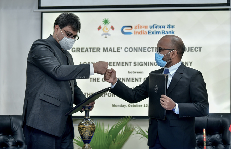ފިނޭންސް މިނިސްޓްރީން އާންމުކޮށްފައިވާ ހިސާބުތަކުން އެނގޭ ގޮތުގައި ބޭރުގެ ގައުމުތަކުން ނެގި ލޯނުތަކުގެ ތެރެއިން އެންމެ ބޮޑު އަދަދެއް ނަގާފައިވަނީ އިންޑިއާގެ އެގްޒިމް ބޭންކުންނެވެ. އެ ބޭންކުން، ދެ ޕްރޮޖެކްޓަކަށް 140 މިލިއަން ޑޮލަރު (2.2 ބިލިއަން ރުފިޔާ) ވަނީ ނަގައިފަ އެވެ. އޭގެ ތެރެއިން އެއް ލޯނު ނަގާފައި އޮތީ ފުލުހުންގެ ޕޮލިސް ސްޓޭޝަންތަކާއި ކަސްޓޯޑިއަލް ފެސިލިޓީތަކެއް ހެދުމަށެވެ. ދެވަނަ ލޯނު ނެގީ ލައިން އޮފް ކްރެޑިގެ ދަށުންނެވެ.