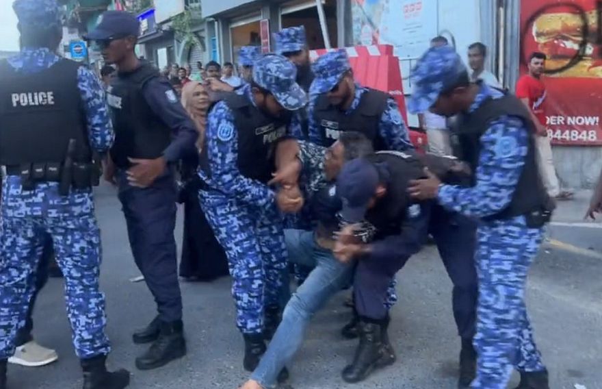 މުޒާހަރާ ކޮންޓްރޯލްކުރަން ގޮސް ތިބި އެސްއޯ ފުލުހުންގެ އެތައް ބަޔަކުވެގެން އެ މީހާ ހައްޔަރުކުރާއިރު ވީޑިއޯ އިން ފެންނަ ގޮތުގައި އެ މީހާ ވެސް ދިޔައީ ގަދަ ދައްކަމުންނެވެ. ފޮޓޯ ނެގީ ކީއްވެތޯ އަހާ އަޑު އިވެ އެވެ. ފުލުހުންނާއި ހައްޔަރުކުރި މިހާ އާއި މުޒާހަރާގެ ބައިވެރިން ބަހުގެ ހަމަލާތައް ދެމުން ގޮސް، އެ މީހާ ފުލުހުންގެ ވެހިކަލަށް އަރުވަ އެވެ.