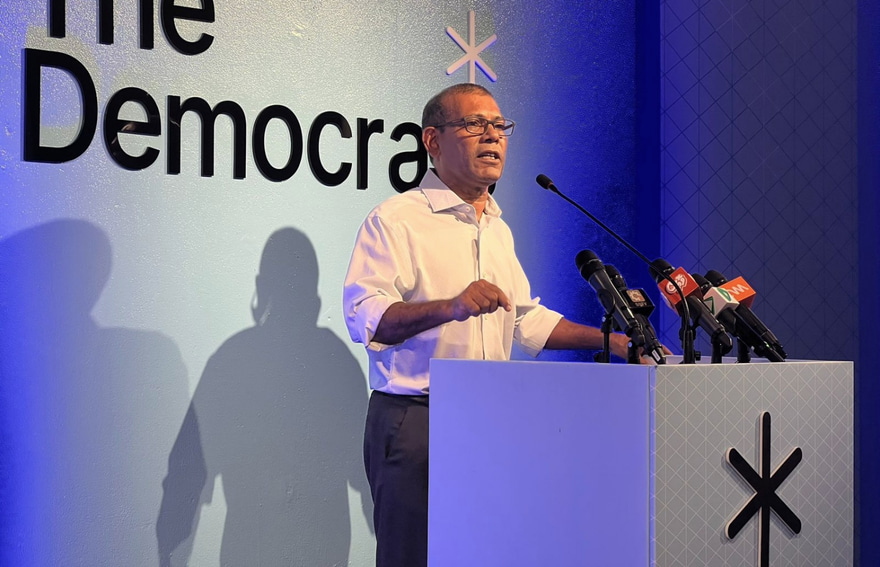 "ޑިމޮކްރެޓުން މިއަދު އެދި ގޮވަނީ މި ދިވެހިރާއްޖެ އެދިގޮވާ އެތައް ކަމެއް ފުއްދައިދިނުމުގެ ސިޔާސަތުތަކާއެކު. މި ޕާޓީއަށް ވޯޓުދޭ ދިވެހި ކޮންމެ ރައްޔިތަކީ އިތުރު އެހެން ކަމަކަށް ވޯޓު ދޭ ރައްޔިތެއް ނޫން. އޭނާގެ އަމިއްލަ ހާލަތަށް، އޭނަ އާއި އޭނާގެ އަމިއްލަ އާއިލާ، އޭނަ އާއި އޭނާގެ ދަރިންނަށް، އޭނާގެ ގޭގެ މީހުންނަށް ހެޔޮގޮތެއް، ރަނގަޅު ގޮތެއް، ތަނަވަސް ގޮތެއް ހޯދައިދޭނެ، ފޯރުކޮށްދޭނެ ސިޔާސަތުތަކެއް ތަންފީޒުކޮށްދޭނެ. ޑިމޮކްރެޓުންގެ ސިޔާސަތުތަކަކީ." ކުރިން އެމްޑީޕީގެ ހަރުގެ ހިންގި ތަނުގައި ވާހަކަފުޅުދައްކަވަމުން ނަޝީދު ވިދާޅުވި އެވެ.