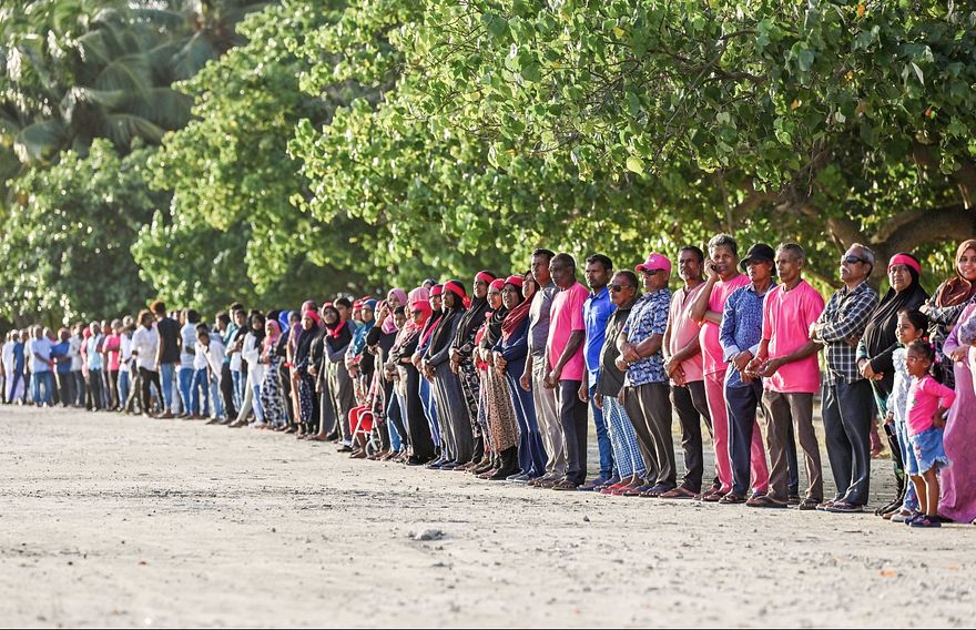 ރަށުގެ ޖެޓީ ކައިރިން ފެށިގެން ކޮޅާއިކޮޅު ނުފެންނަ ހިސާބަށް، މުއިއްޒުގެ ސަޕޯޓަރުން އޭނާ އަށް މަރުހަބާ ކިޔުމަށް ދިގު ސަފަކަށް އެތުރިލައިގެން ތިއްބެވެ. ރަށުގެ ކުޑަކުދިންނާއި ޒުވާނުން އަދި ދޮށީ އުމުރުގެ ގިނަ ބަޔަކު ވެސް ތިއްބެވެ.