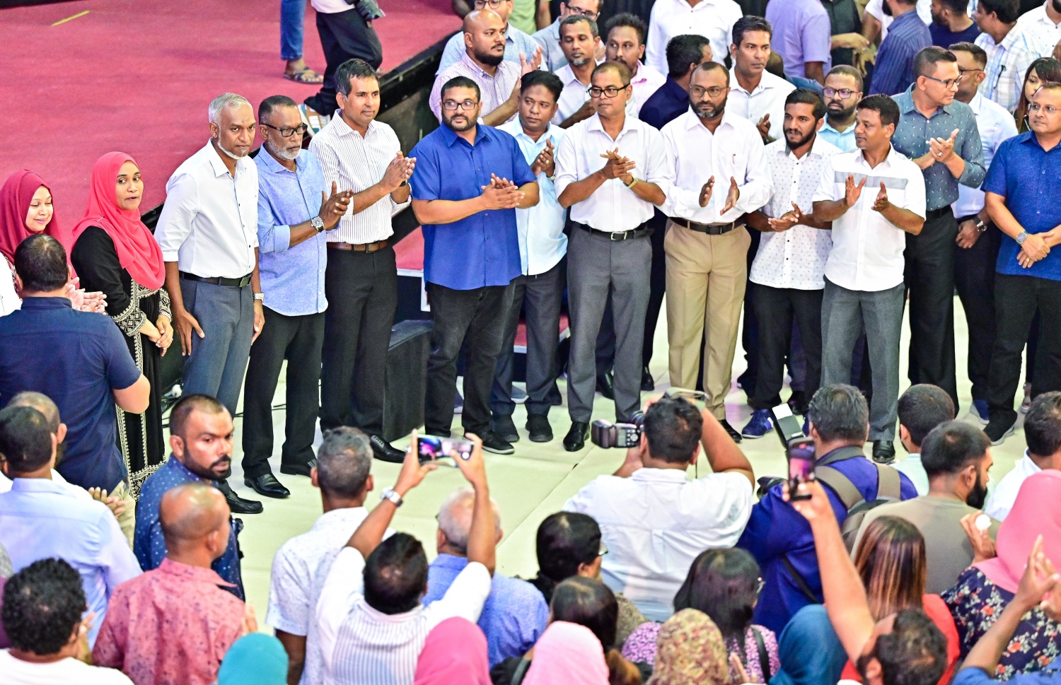 މިދިޔަ ހޮނިހިރު ދުވަހު ބޭއްވި ރިޔާސީ އިންތިހާބުގައި ހޯއްދެވި ބޮޑު ކާމިޔާބީގެ އުފާވެރިކަން ފާހަގަކުރަން އެތައް ސަތޭކަ ބަޔަކާ އެކު، ސޯޝަލް ސެންޓަރުގައި ބޭއްވި ޖަލްސާގައި މުއިއްޒު ވަނީ ކެމްޕެއިންގައި ވެވަޑައިގެންނެވި ވައުދުތަކާ އެއްގޮތަށް ބާރު ސްޕީޑުގައި ދިވެހިންނަށް ތަރައްގީ ގެނެސްދެއްވާނެ ކަމުގެ ޔަގީންކަން އަނެއްކާ ވެސް ދެއްވައިފަ އެވެ.