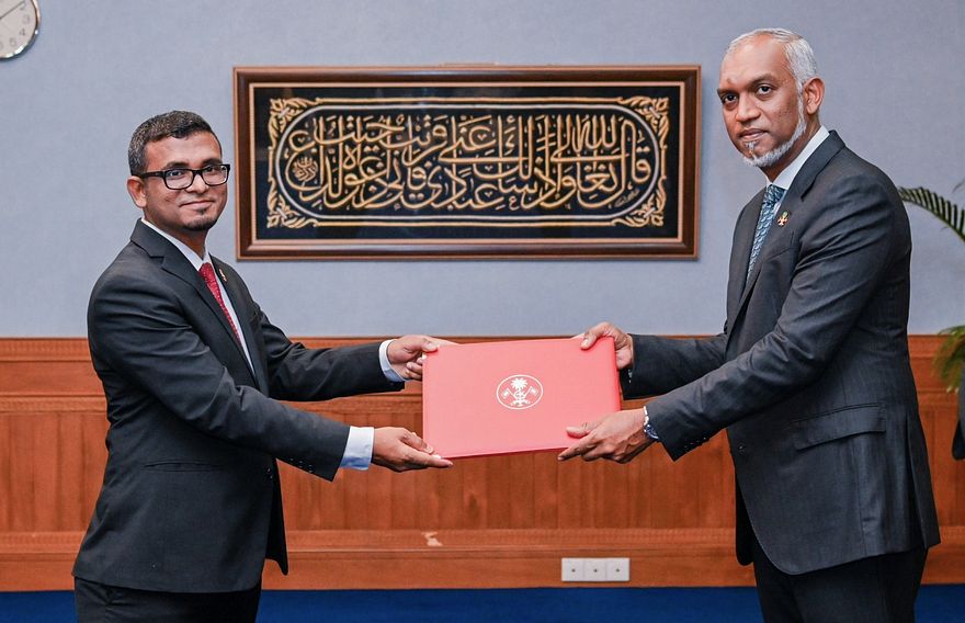 މުނައްވަރާއި ނަސީރު އެ މަގާމަށް އައްޔަންކުރައްވައި މަގާމުގެ ފަތްކޮޅު ދެއްވީ މިއަދު ހެނދުނު ރައީސް އޮފީހުގައި ބޭއްވި ހާއްސަ ރަސްމިއްޔާތެއްގަ އެވެ.