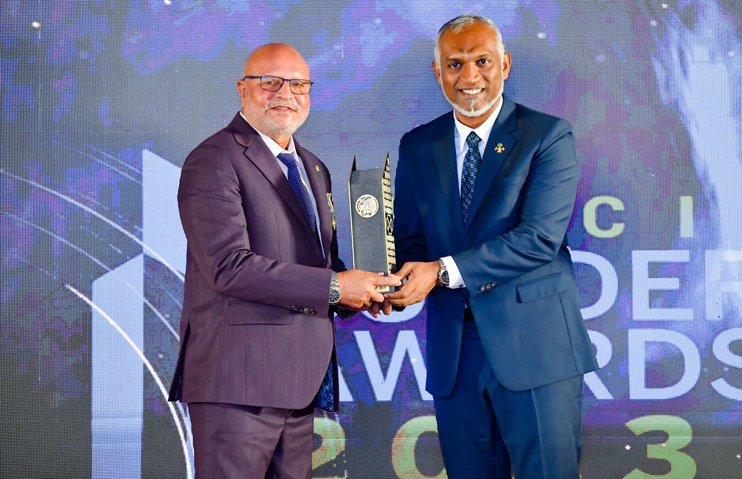 އިމާރާތްކުރުމުގެ ދާއިރާ އަށް ރައީސް ޑރ. މުހައްމަދު މުއިއްޒު ކުރައްވާފައިވާ ހިދުމަތުގެ އަގުވަޒަން ކުރުމުގެ ގޮތުން، މޯލްޑިވްސް ނޭޝަނަލް އެސޯސިއޭޝަން އޮފް ކޮންސްޓްރަކްޝަން އިންޑަސްޓްރީ (މަސީ) އިން ދޭ އެންމެ ފަހުރުވެރި ލަގަބު "ބޮޑު ރަސްގެފާނު ލަގަބު" އެ މަނިކުފާނަށް ރޭ އަރުވައިފި އެވެ.