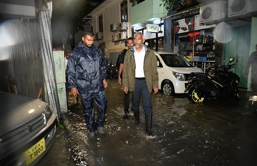 ރެއިން ފެށިގެން މެދުކެނޑުމެއް ނެތި މާލެ އަށް ވެހޭ ވާރޭގައި ގެއްލުން ލިބުނު ބައެއް ގެތަކަށް ރައީސް ޑރ. މުހައްމަދު މުއިއްޒު ވަޑައިގެން އެ ގޭގޭގެ ހާލަތު ބައްލަވާލައްވައިފި އެވެ.