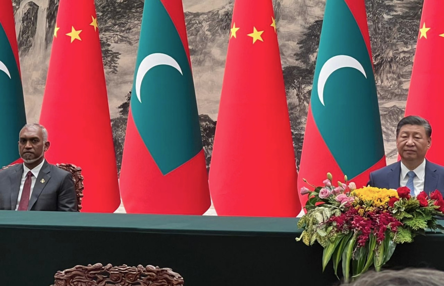 އެ އެމްއޯޔޫތަކުގައި ދެ ގައުމުގެ ސަރުކާރުގެ އިސް އޮފިޝަލުން ސޮއިކުރެއްވީ ރާއްޖޭގެ ރައީސް ޑރ. މުހައްމަދު މުއިއްޒު ޗައިނާ އަށް މިހާރު ކުރައްވަމުން ގެންދަވާ ފުރަމާނަ ދަތުރުފުޅުގެ ތެއިން މިއަދު ހަވީރު ބޭއްވި ރަސްމިއްޔާތުގަ އެވެ. އެ ރަސްމިއްޔާތުގައި ރައީސް ޑރ. މުއިއްޒާއި ޗައިނާގެ ރައީސް ޝީ ޖިންޕިން ވެސް ބައިވެރިވެވަޑައިގަތެވެ.